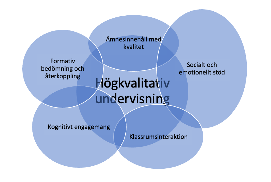 | 5. Tydliggöra mål och innehåll 6. Strukturera undervisningen för progression 7. Använda exempel och modeller 8. Fokusera på centrala begrepp och samband | Ämnets innehåll och kvalitet |